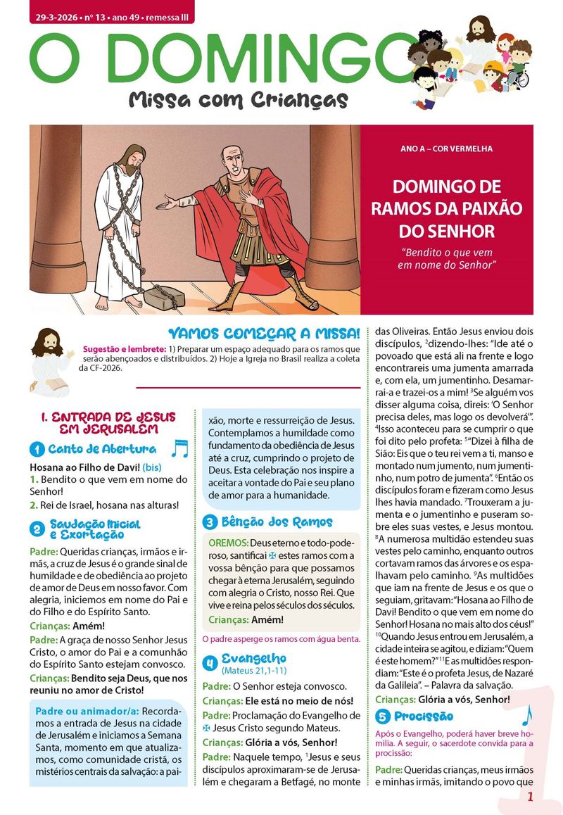 A remessa 03/2026 começará com o exemplar do dia 29/03/2026 - Domingo de Ramos da Paixão do Senhor