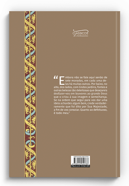 Um castelo dividido em várias moradas foi a comparação que Santa Teresa utilizou no século XVI para descrever os sucessivos estágios que a alma percorre no seu caminho em direção a Deus. Este livro transmite a doutrina espiritual da reformuladora do Carmelo e, ao mesmo tempo, reflete sua experiência pessoal. As sete moradas da vida interior em que se divide a obra representam as etapas da santidade que o homem tem de alcançar até chegar à perfeição.