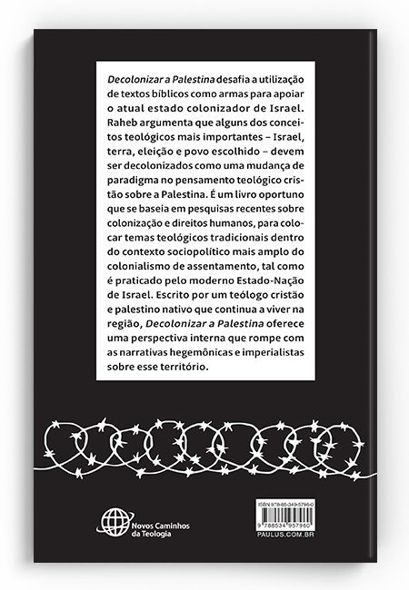 Decolonizar a Palestina desafi a a utilização de textos bíblicos como armas para apoiar o atual estado colonizador de Israel. Raheb argumenta que alguns dos conceitos teológicos mais importantes – Israel, terra, eleição e povo escolhido – devem ser decolonizados como uma mudança de paradigma no pensamento teológico cristão sobre a Palestina. É um livro oportuno que se baseia em pesquisas recentes sobre colonização e direitos humanos, para colocar temas teológicos tradicionais dentro do contexto sociopolítico mais amplo do colonialismo de assentamento, tal como é praticado pelo moderno Estado-Nação de Israel. Escrito por um teólogo cristão e palestino nativo que continua a viver na região, Decolonizar a Palestina oferece uma perspectiva interna que rompe com as narrativas hegemônicas e imperialistas sobre esse território.