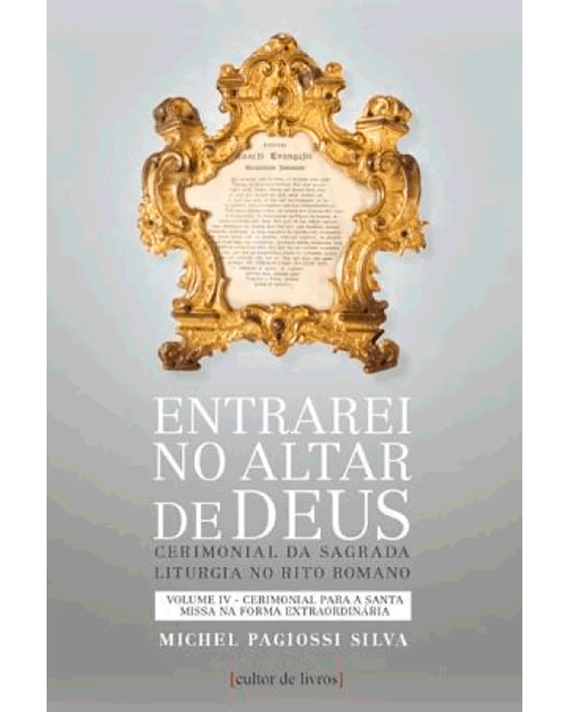 Em mais este volume da coleção sobre liturgia "Entrarei no Altar de Deus", Michel Pagiossi Silva esclarece tudo sobre a Santa Missa na forma Extraordinária — ou como é mais conhecida, sobre a chamada Missa Tridentina. De forma embasada, clara e com ilustrações inéditas, o livro apresenta desde elementos históricos até o 'passo a passo' da celebração da Santa Missa na Forma Extraordinária, com as rubricas, orações, posições, gestos e disposições, tanto do sacerdote que celebra quanto dos acólitos e fiéis que participam