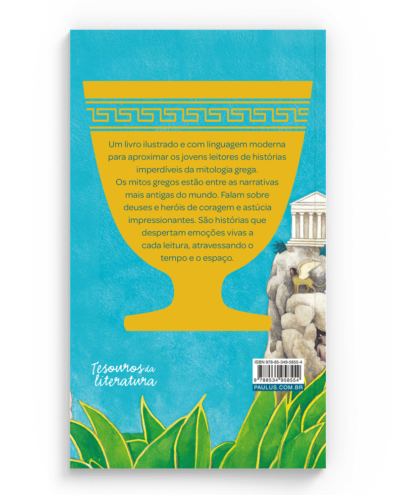 Com ilustrações e linguagem moderna, este livro busca aproximar os jovens leitores de histórias imperdíveis da mitologia grega, narrativas antigas que falam sobre deuses e heróis de coragem e astúcia impressionantes, e que despertam emoções vivas a cada leitura, atravessando o tempo e o espaço. Nesta edição, o leitor conhecerá os mitos da caixa de Pandora; de Perséfone e Hades; de Narciso e Eco; de Orfeu e Eurídice; de Édipo e da Esfinge; do velocino de ouro; de Dédalo e Ícaro; do rei Midas; de Eros e Psique; de Teseu e do Minotauro; e de Páris, príncipe de Troia.
