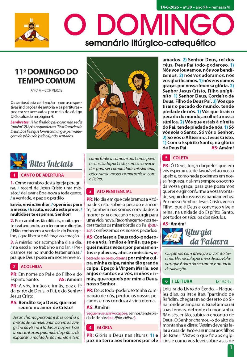 A remessa 06/2026 começará com o exemplar do dia 14/06/2026 - 11º Domingo do Tempo Comum