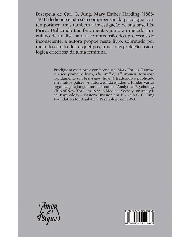 Neste livro a autora propõe uma interpretação psicológica da alma feminina segundo o método junguiano de análise. Através do material comparativo encontrado na mitologia, no folclore, lendas, sonhos e na história comparada das religiões, a autora nos faz compreender mais claramente os horizontes amplos da psique humana e os processos inconscientes da vida psíquica.