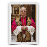 Cartão Postal com foto oficial do Papa Leão XIV, com brasão e assinatura. Oração no verso do cartão.