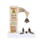 Produto em madeira, adesivo com brilho e metais em ouro velho.