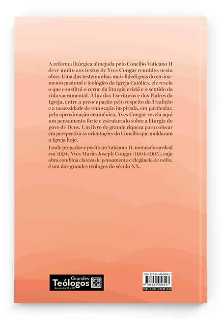 No coração da liturgia cristã, publicado originalmente em 1960, é um conjunto de cinco ensaios escritos por Yves Congar, que foi ao mesmo tempo um fervoroso defensor da Tradição e um teólogo sensível à necessidade de renovação da instituição. São abordados: o vínculo da liturgia e da pregação com o conceito de real de Santo Agostinho e São Tomás de Aquino; a comunidade cristã como sujeito integral da ação litúrgica; a estrutura do sacerdócio cristão; o sentido de sagrado com o advento da Nova Aliança; o significado do domingo. O livro contém ainda uma introdução à obra de Congar, algumas questões para o leitor refletir ao fim de cada ensaio, uma conclusão analítica, além de índice de nomes e índice temático para auxiliar em estudos mais minuciosos.