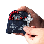 Acompanha uma mochila para guardar o terço (mini mochilinha)